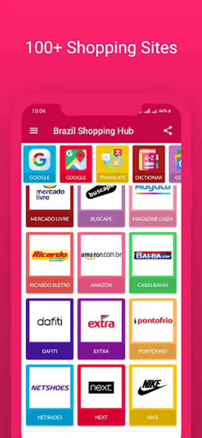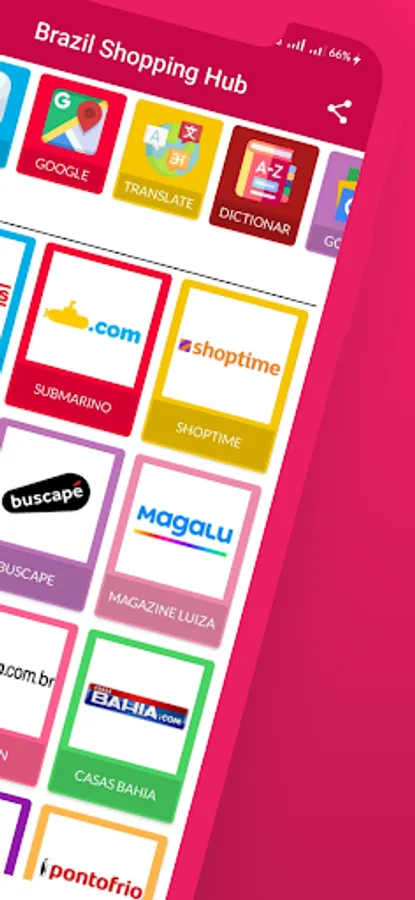 Brazil Shopping Hub App is a collection of all major online shopping stores like: Shoptime Shopping, Casas Bahia, Pontofrio, Buscape and much more.