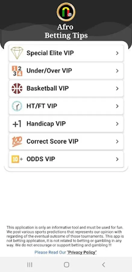 Afro betting tips is a free betting tips app which will make you win everyday.
