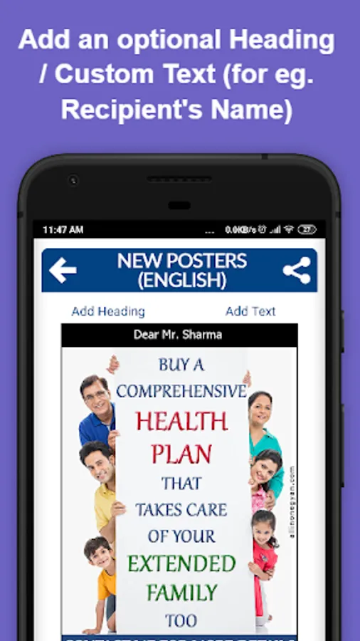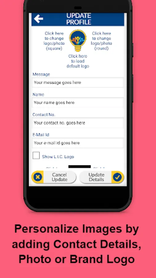 You can personalize the images by adding your message, name & contact details along with your photograph & brand logo.