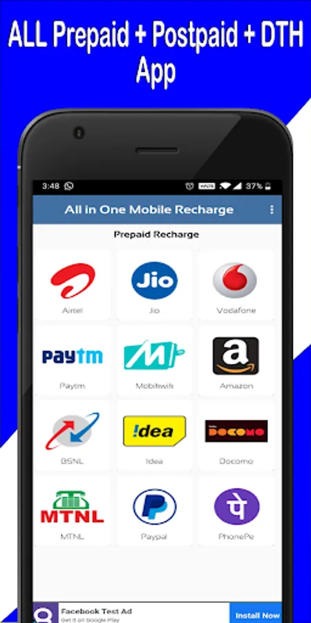 Do online mobile recharge with this All Recharge App. all Prepaid and Postpaid Mobile Recharge, DTH bill payment and money transfer,recharge mobile online, mobile recharge app.