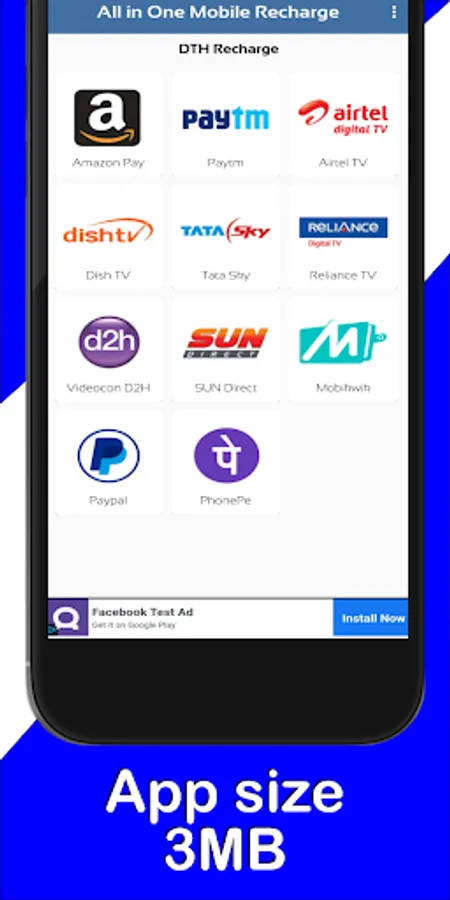 Amazon prime,Mobikwik Reliance Digital Tv, My Tata Sky Others Recharge also available on it.