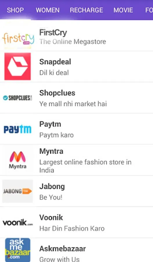 All in One Shopping app has huge collection of all famous Shopping Sites in India.