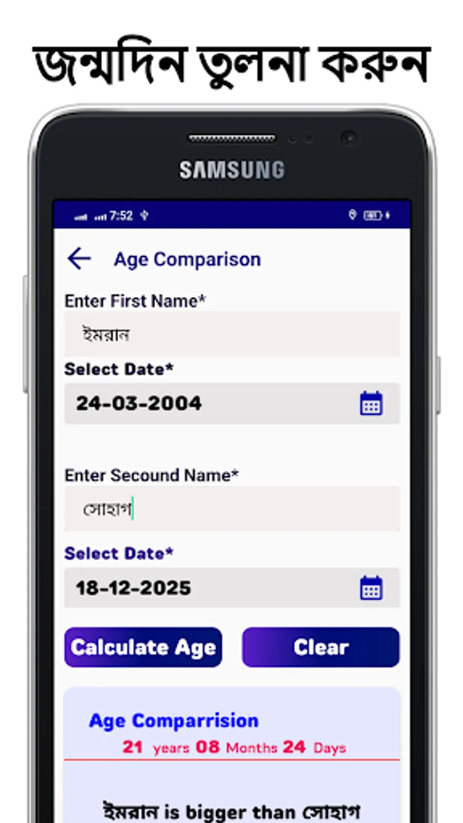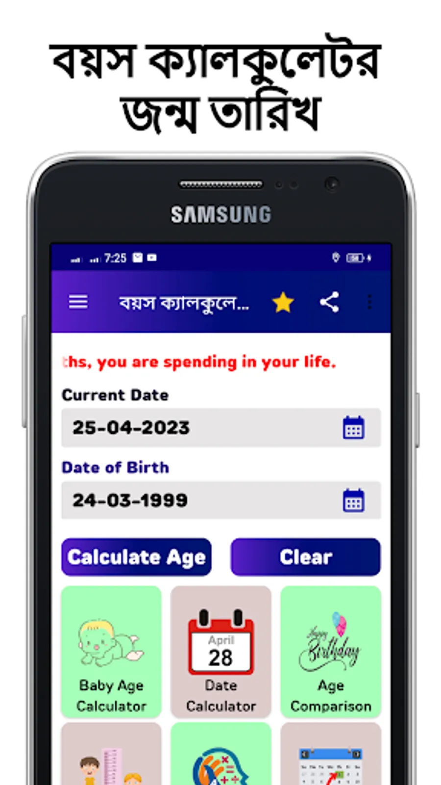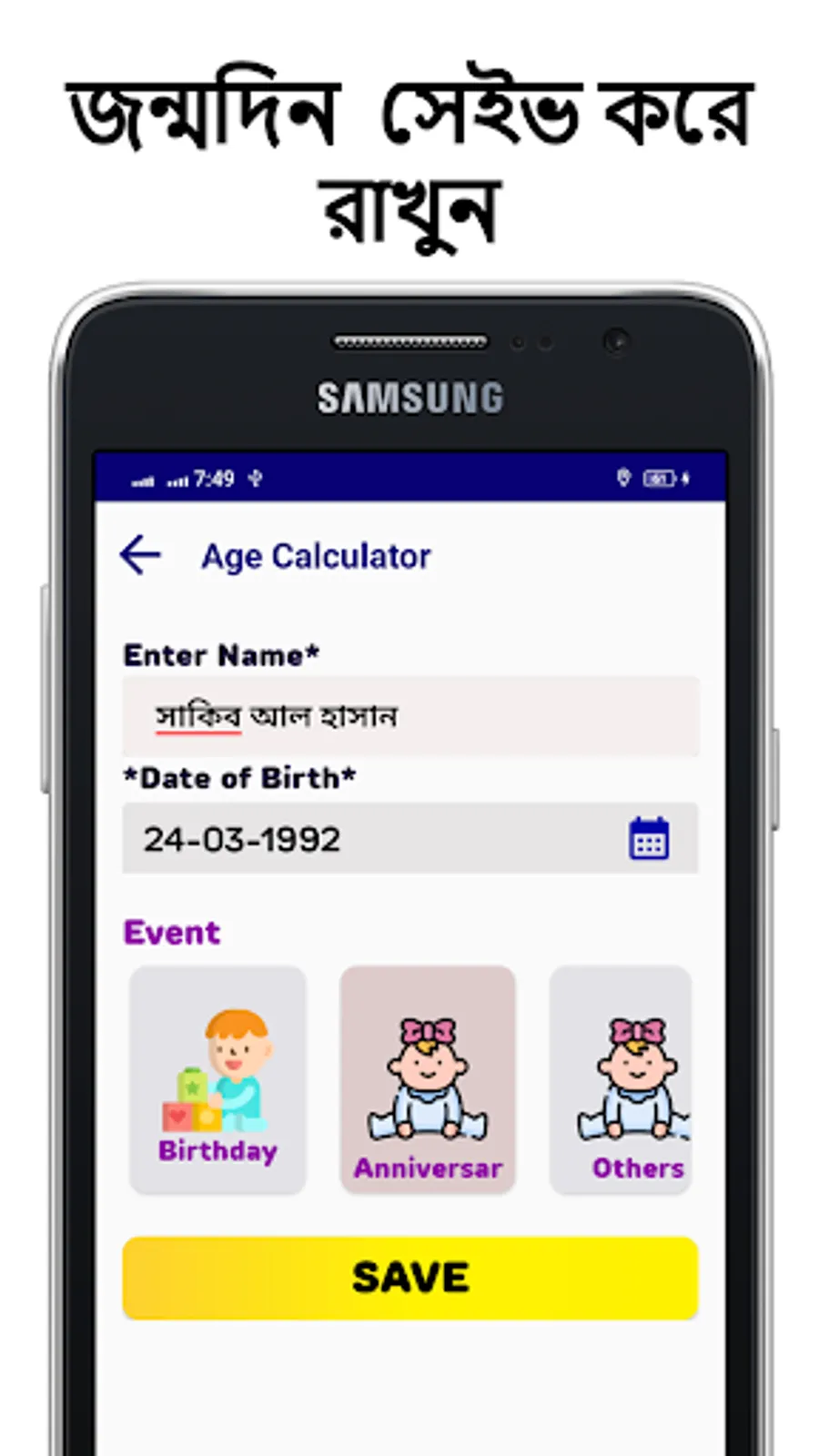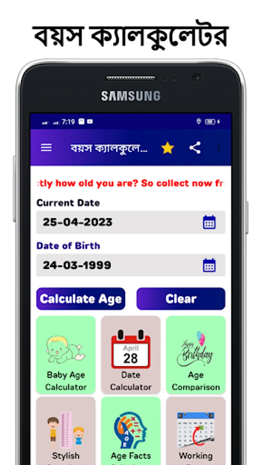 বয়স ক্যালকুলেটর অ্যাপ সুবিধা: