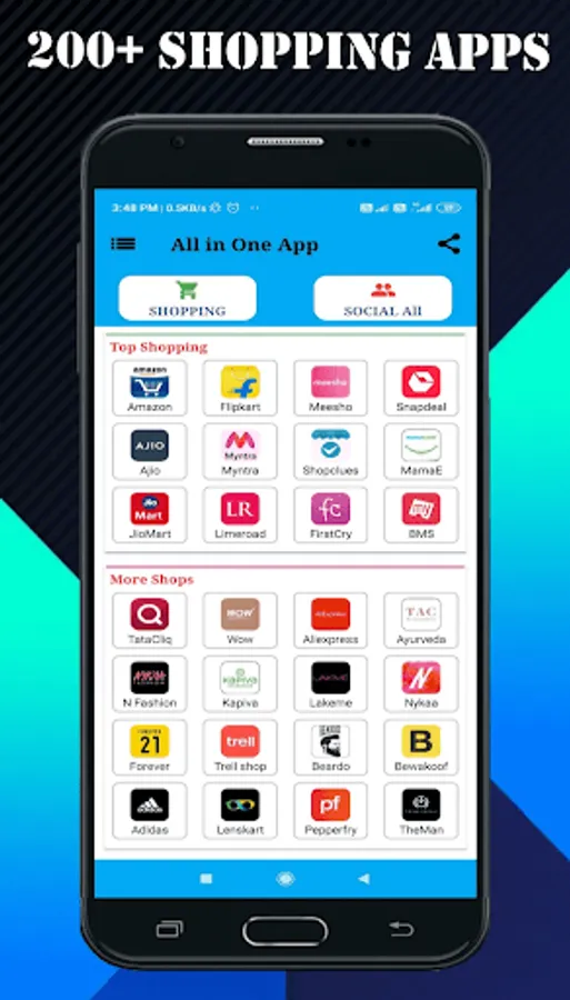 All in One Shopping App is having Online Shopping App where you can shop from a variety of online portals Instantly use more top Indian shopping sites, Checkout Daily Deals and Handpicked Deals & Offers from top Shopping Sites with new All in One Shopping app. Receive easily app notifications on Live Offers & Discounts and notifications of all Sales on a daily basis.