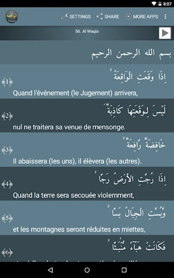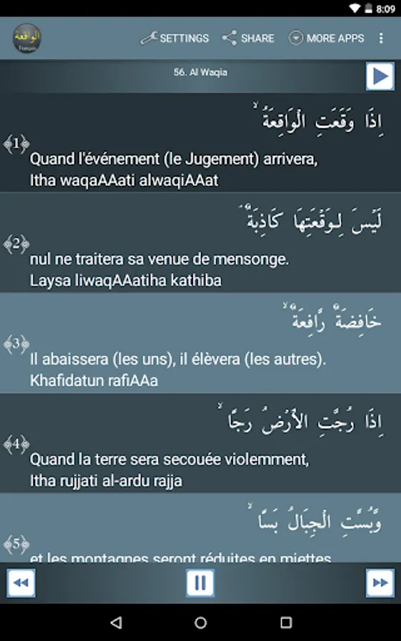 Read and listen verse by verse recitation of Surah Al-Waqia(سورة الواقعة) in Arabic. Beautiful voices of many International reciters.