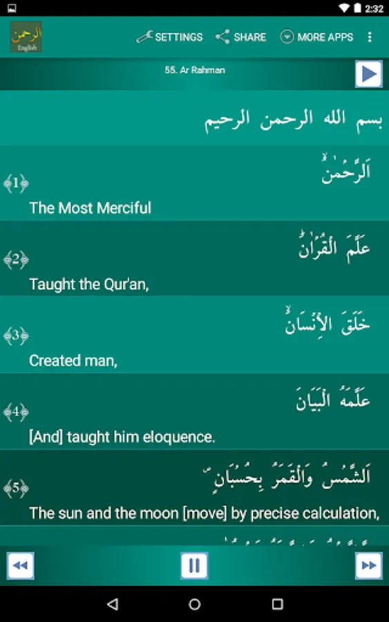 Read and listen verse by verse recitation of Surah Ar-Rahman(اَلرَّحۡمٰنُۙ ) in Arabic and English. Beautiful voices of many International reciters along with Urdu recitation.