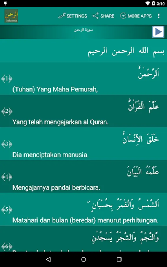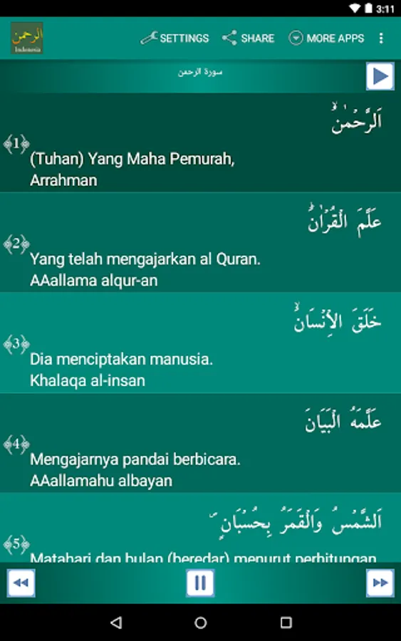 Read and listen verse by verse recitation of Surah Ar-Rahman(اَلرَّحۡمٰنُۙ ) in Arabic. Beautiful voices of many International reciters.