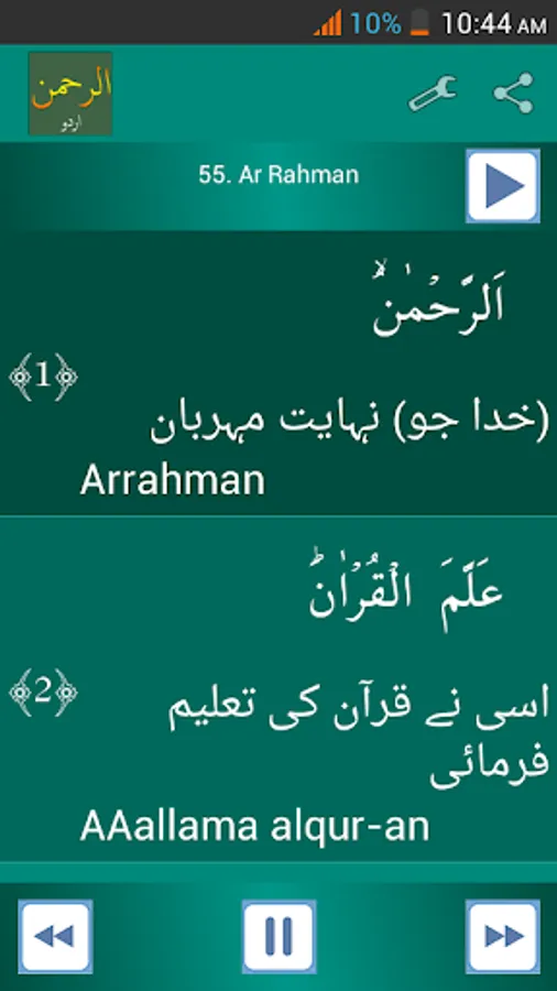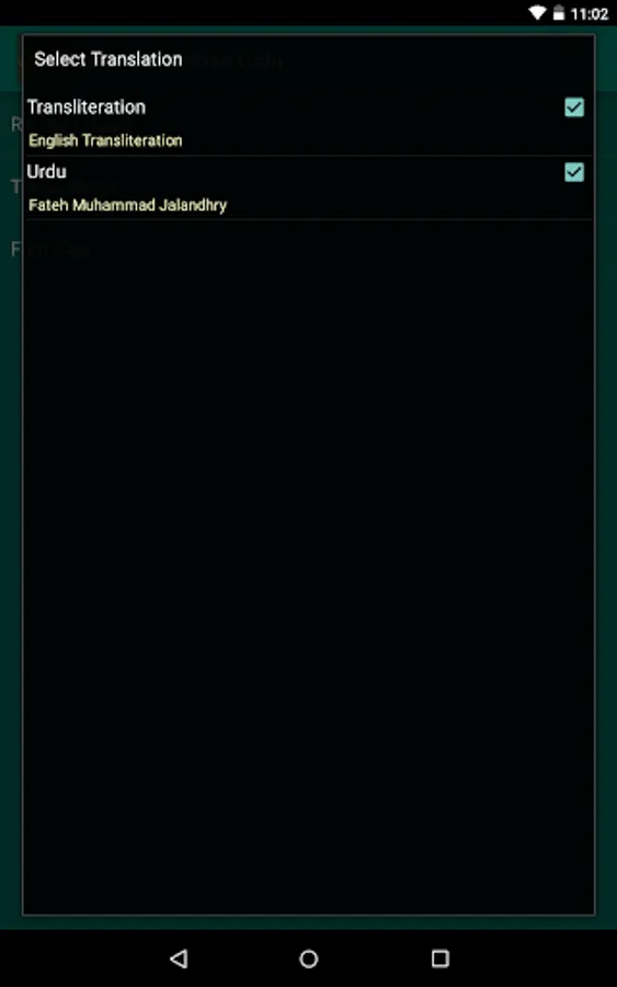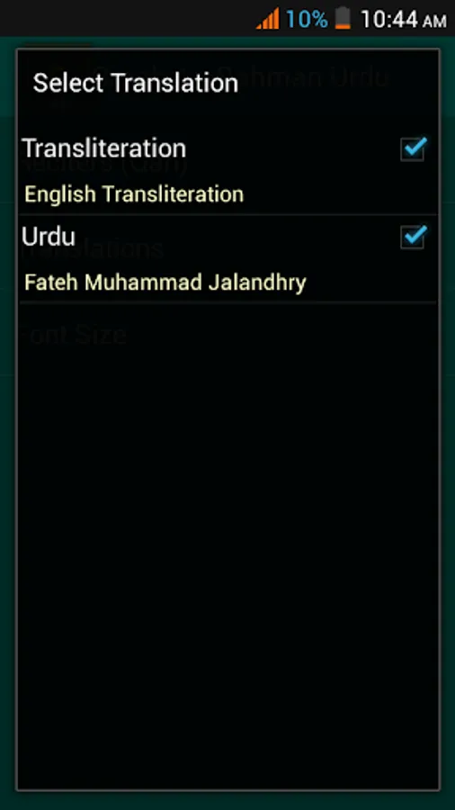 • Select Urdu translation and transliteration at the same time.