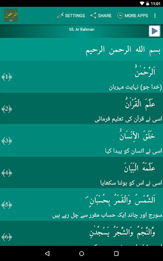 Read and listen verse by verse recitation of Surah Ar-Rahman (اَلرَّحۡمٰنُۙ ) in Arabic and Urdu اردو. Beautiful voices of many International reciters along with Urdu recitation.
