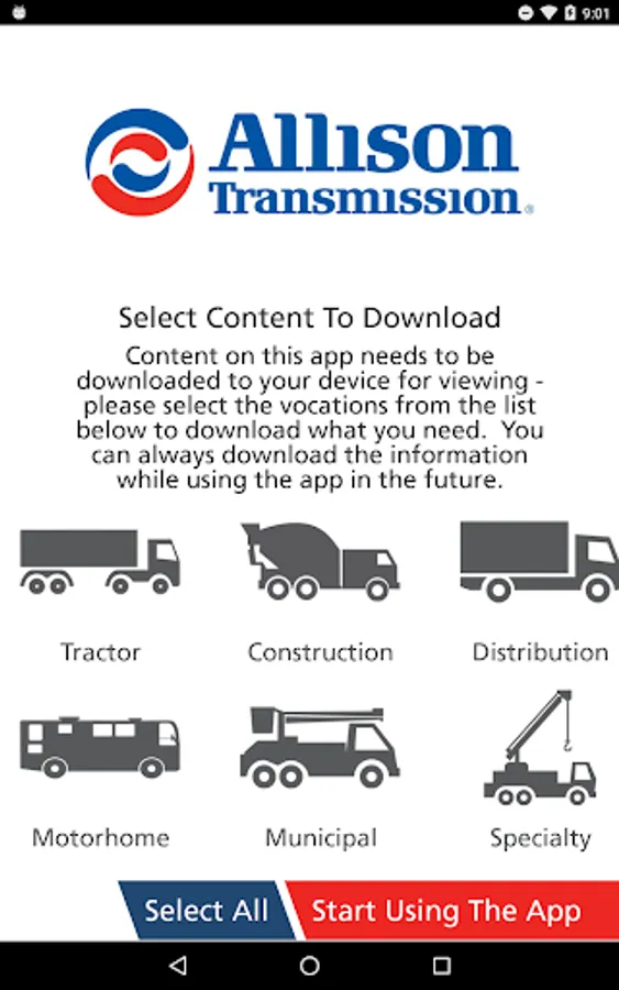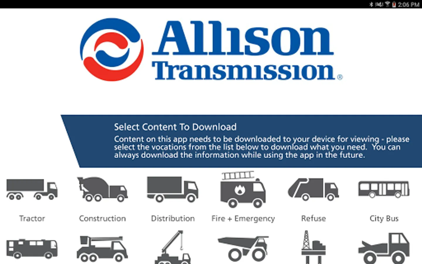 The Allison Transmission mobile app offers the latest vocational product information and ratings data for researching, comparing and selecting an Allison fully automatic transmission.