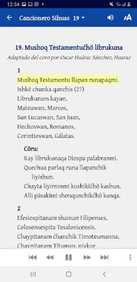This resource is a package of hymns of worship and praise to God and some school songs. All the songs in this volume have been adapted and sung by Sihuas Quechua translators. It is everyone's wish that this resource inspire and reach all the Quechua-speaking people to worship the Lord with emotion and joy.