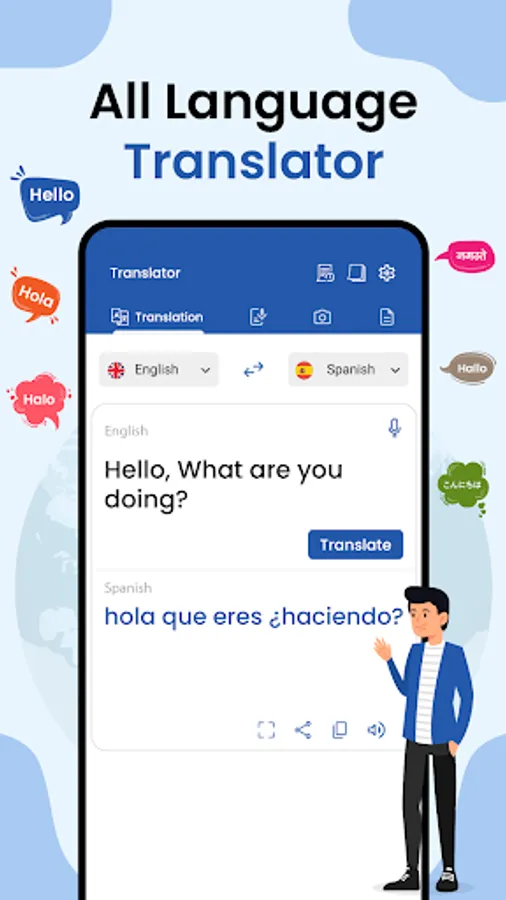 All Language Translation App allowing you to speaks naturally in your own language while your words are seamlessly translated into the desired language. Whether you're a globe adventurer, an international business professional, or simply someone who values the richness of cultural exchange, this app is your ultimate companion. Engage in fluid conversations without interruption, as the app provides instant translations of your spoken words. The app facilitates bi-directional translation, ensuring that both parties can express themselves freely and understand each other effortlessly.