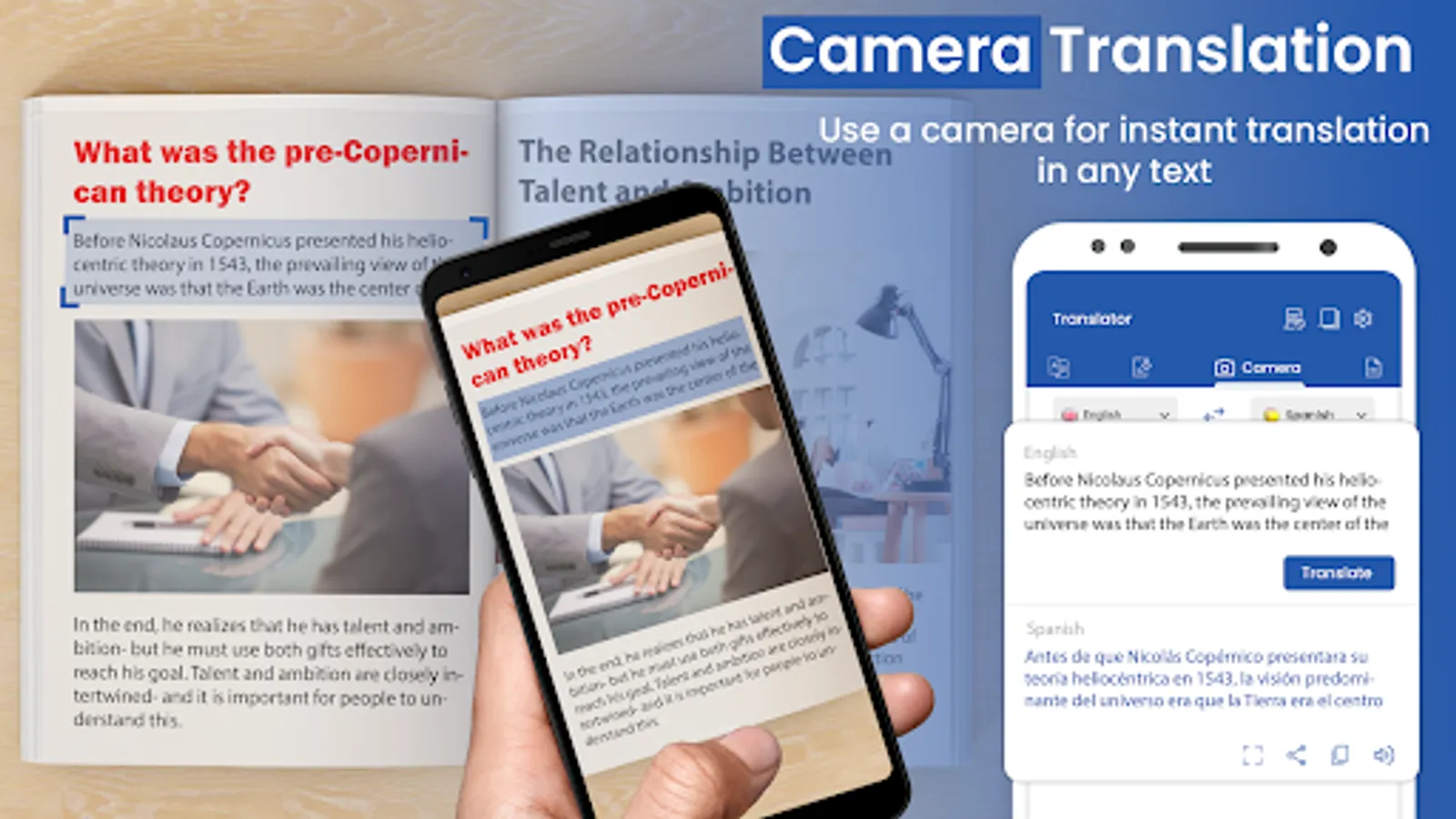 With the Camera Translation feature, the app allows you to simply translate camera at text, signs, menus, documents, or any printed material real-time translations displayed directly on your screen and understanding foreign language content.