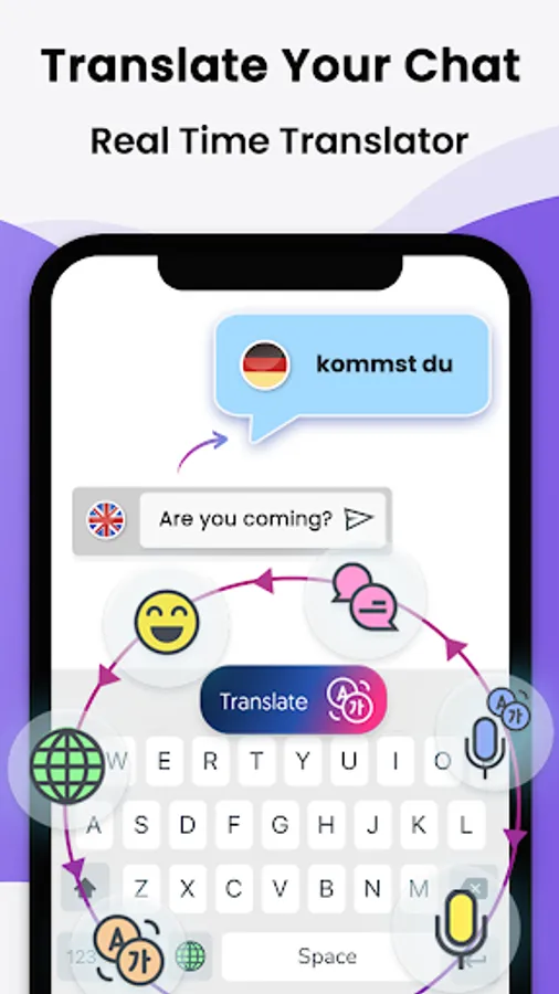 By enabling this chat translator keyboard now, you get amazing features to improve your typing and assist your texting experience. This translator app comes with voice translator, speech to text, keyboard language and translation language features. By using these features, you can enjoy better experience of typing. With voice translator you can easily get translations of your conversation from your native language to any language you want. Its simple use speak & translate technology to translate your chat or conversation in different languages. You can easily copy your translated text and share if you want.