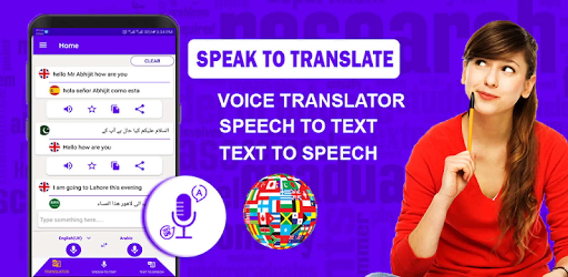 All Languages Voice Translation App can translate anything in any language. You can Translate by speaking. Speak and Translate Application is very handy app which can fulfill your translations need on the go. Translate from any language to the language of your liking on the go.
