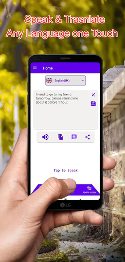 Along with voice Translator you can use Speech to text to convert your speech into text. Speak to our and make voice or text notes. With Speech to Text you can make notes to use them in future. Save your voice notes in voice or text format. Share them with your friends on the go.