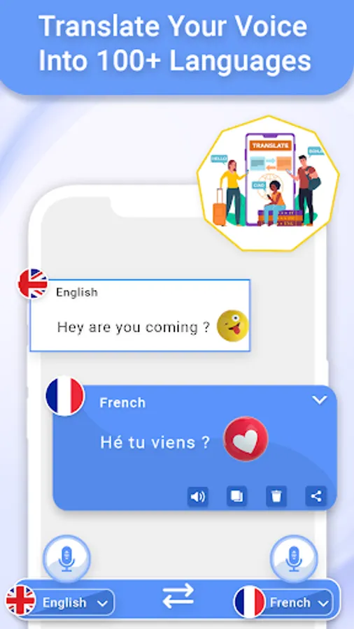 All Language Translator for voice & text supports 100+ languages to translate your voice & text. All language Translator has removed language barrier, now you can communicate or translate in 100+ languages in just fractions of seconds. All language voice translator support conversation mode translations in which you can communicate with other person just like as you do in real conversation.