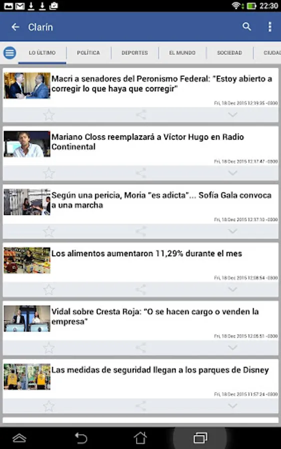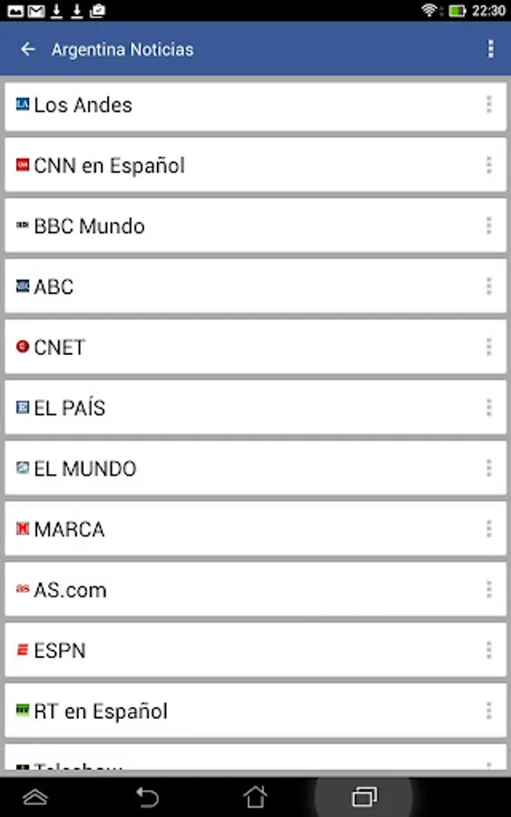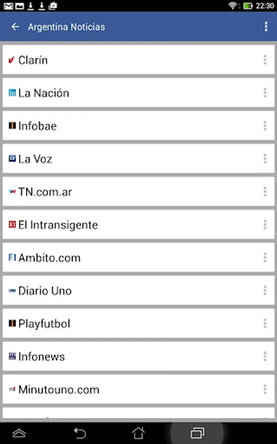 Clarín, La Nación, Infobae, La Voz, TN.com.ar, El Intransigente, Ambito.com, Diario Uno, Playfutbol, Infonews, Minutouno.com, Nexofin, Diario El Día, La Capital, Página/12, Cronista.com, Los Andes, CNN en Español, BBC Mundo, ABC, CNET, EL PAÍS, EL MUNDO, MARCA, AS.com, ESPN, RT en Español, Teleshow