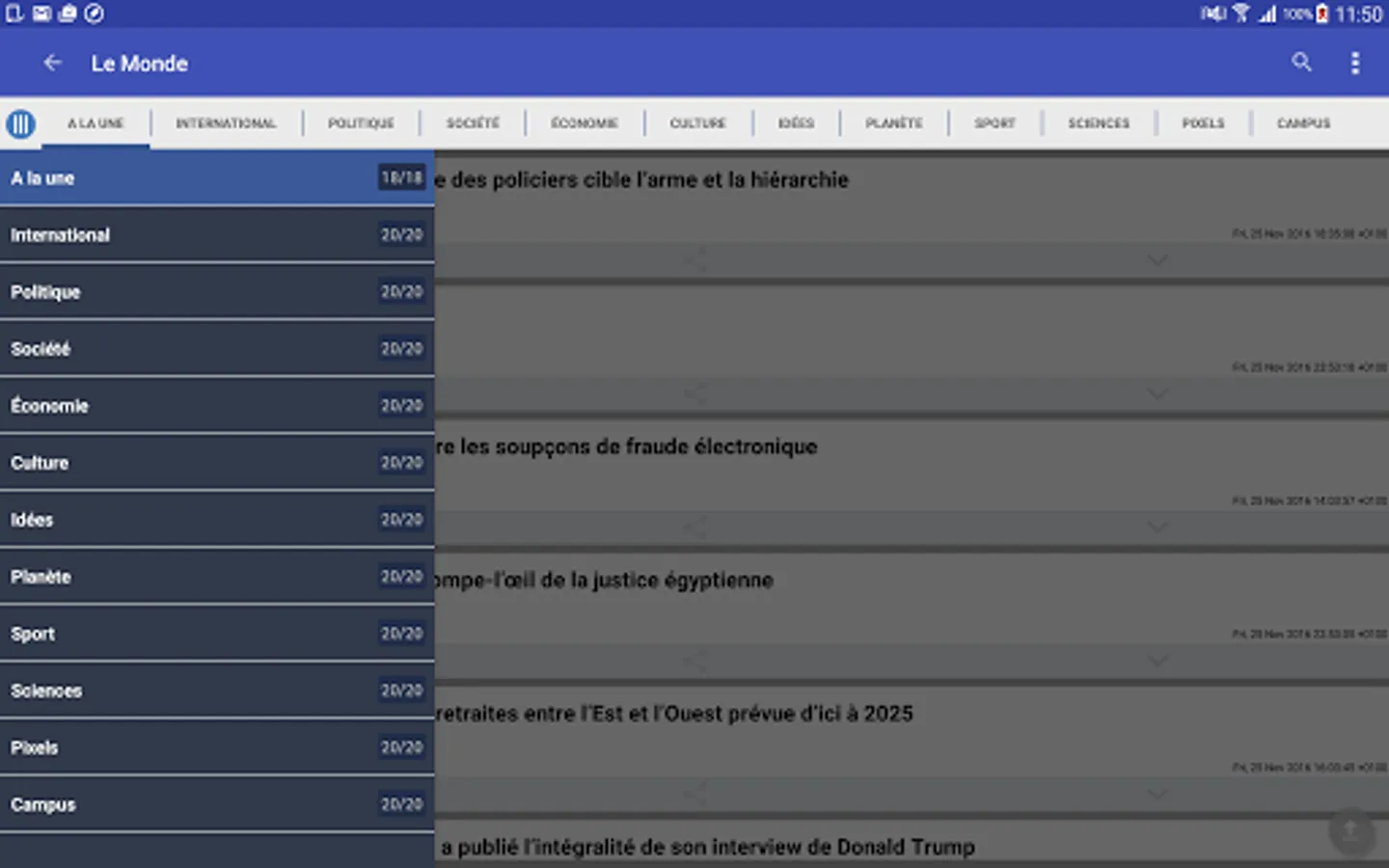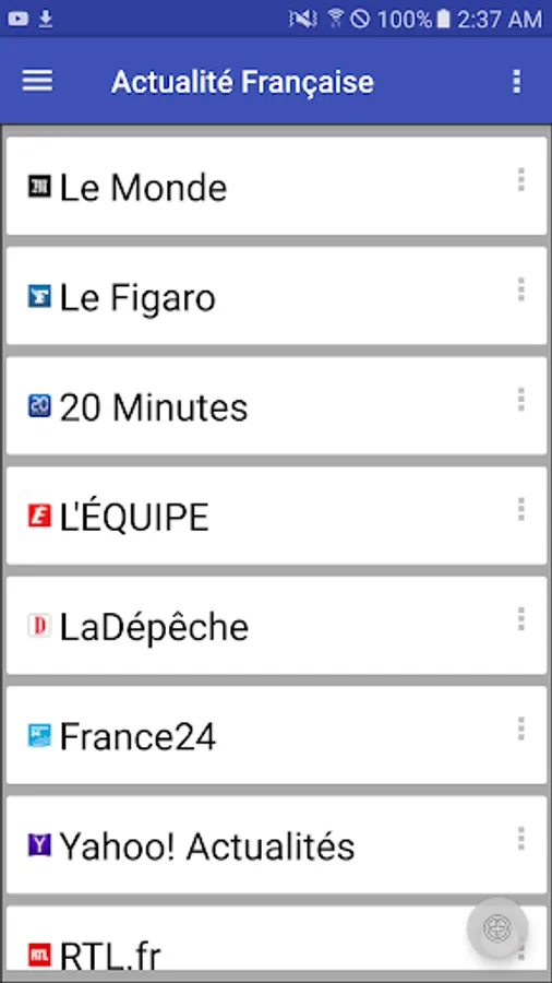 Le Monde, 20 Minutes, L'Equipe, Le Figaro, LaDépêche, Yahoo! News, RTL.fr, Le Nouvel Observateur, L'Express, Le Point, Le Dauphiné Libéré, surfer, Europe 1, France Info, Atlantico, La Voix North, Liberation, information FranceTV, Eurosport, France24, Le Parisien, MYTF1, JDN, the New Republic, ZDNet, Les Echos, Le Huffington post, Goal, the Progress, western France, PurePeople, Cross, L'Humanité, La Tribune, The more, South West, Challenges, Science and Future, International Mail, Slate, Charente Libre, The public Good, The Gorafi, How it works, 01net, Boulevard Voltaire, Midi Libre, Rue89, MetroNews, Clubic, Mediapart, RFI Nice Matin, Paris match News, Agoravox TV, L'Est Républicain, Directmatin, The Telegram, François Desouche, France Soir, The Independent, GAMERGEN, Le Journal de Saône et Loire, Blog Jean-Marc Morandini, planet