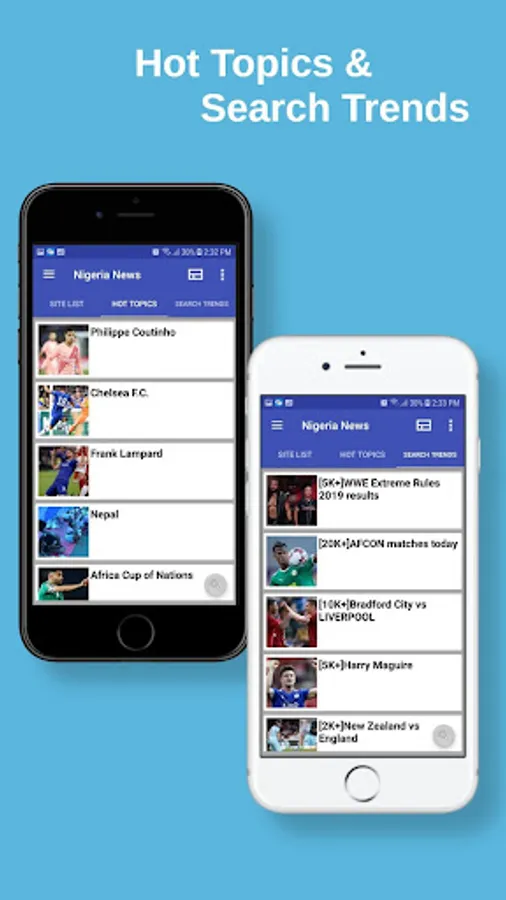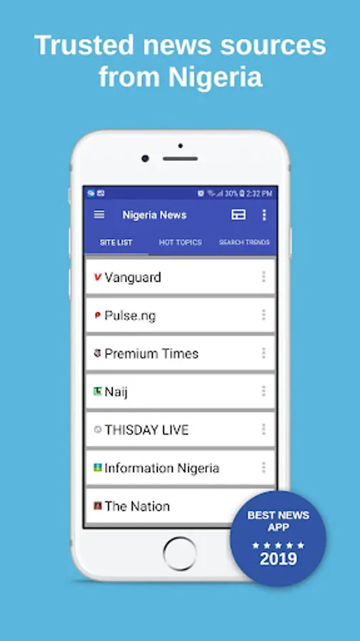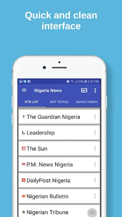 You will find newspapers from all around the world. The Hot Topics will bring the news presented by list. The Search Trends will list the most searched keywords from Nigeria.