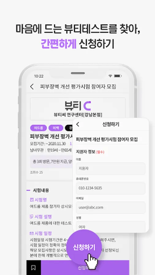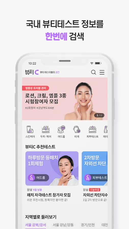 Beauty C (Beauty C) is a service that searches domestic beauty test information at once and connects applicants who wish to participate in the beauty test with test institutes.