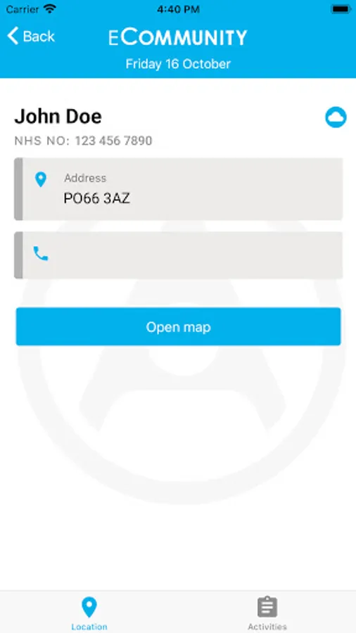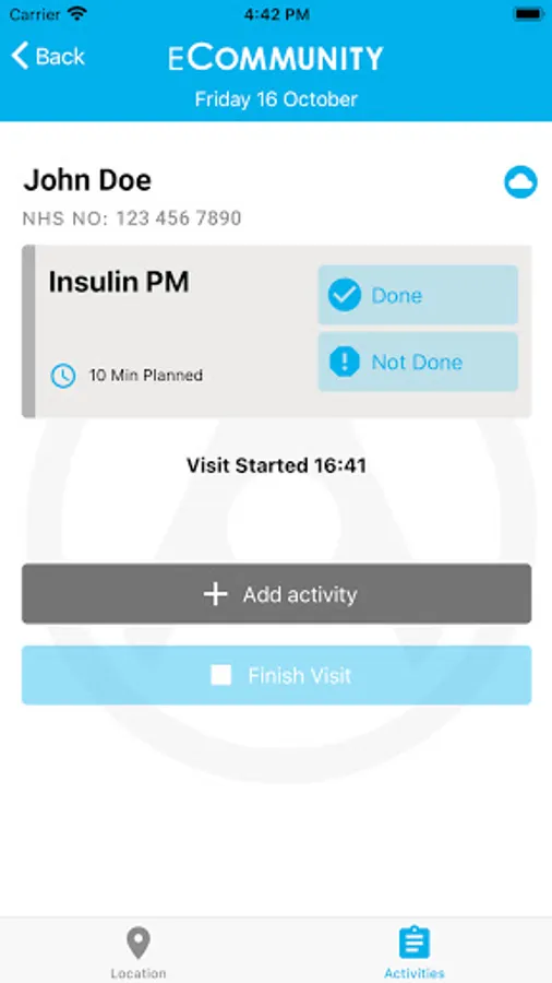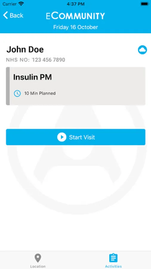 Mobile app for Clinicians to get a daily view of their schedule with patients' address and treatment details