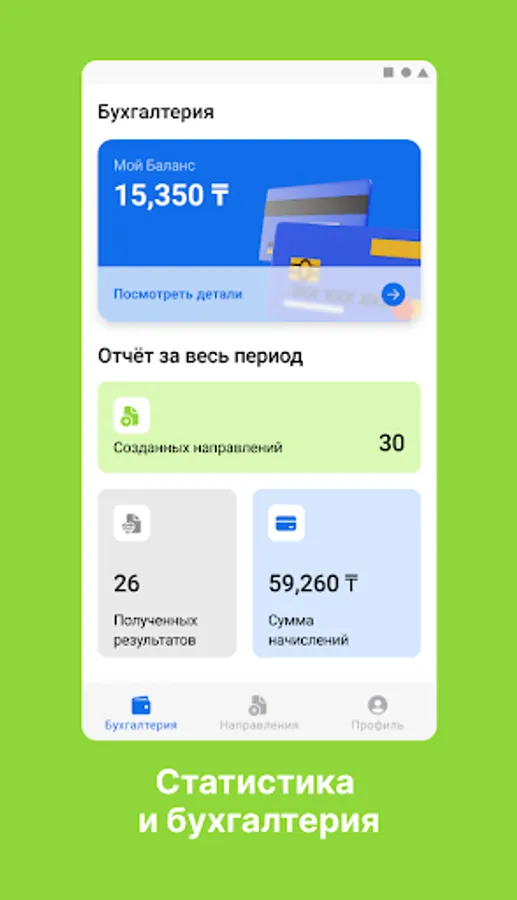 Also, in the doctor’s mobile application, we have added functionality to track the statistics of your referrals – how many referrals have been created, how many referrals have been sent to the laboratory, and in how many referrals results have been obtained. And in the special Accounting tab, you can track the commission that AlloDoc accrues to you for each referral for which the patient received the service. You can withdraw the earned money at any time to the card of any bank in Kazakhstan.
