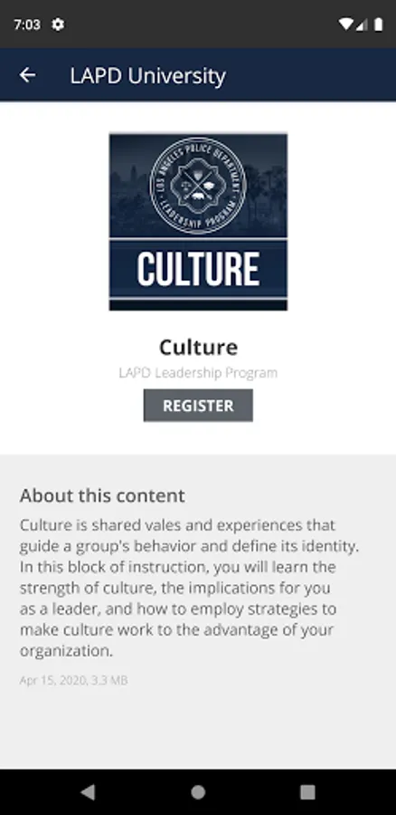 Los Angeles Police Department University is the leading law enforcement distance learning app. You can access courses and grades and reference source documents for all of your eLearning needs.
