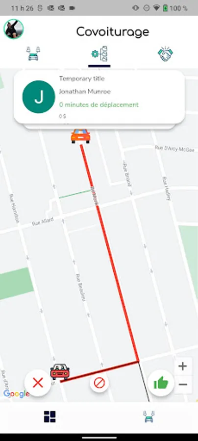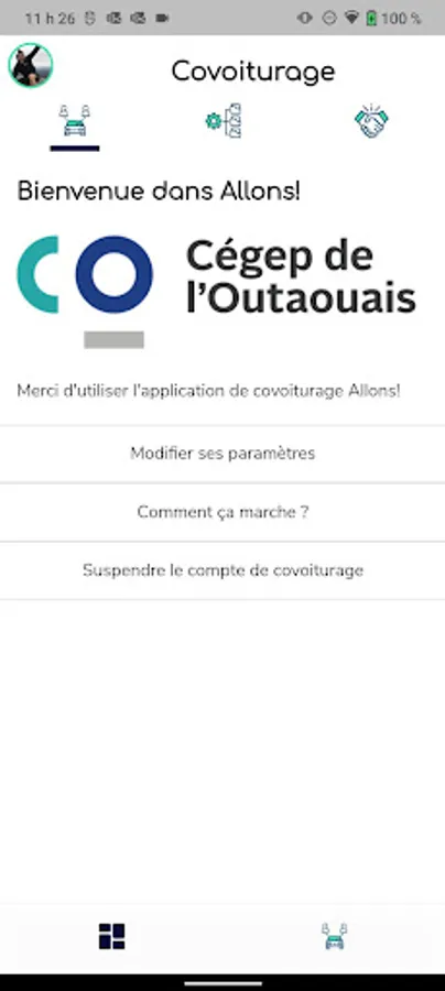 The Allons application is your companion on the go. Use the app to "match" with other users who have journeys similar to yours in a smart way.