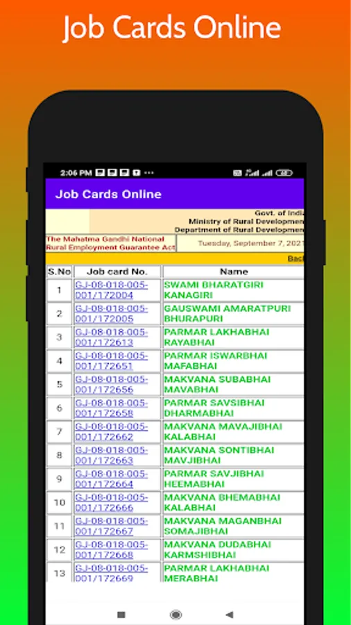 13.All India job Card List under MGNREGS