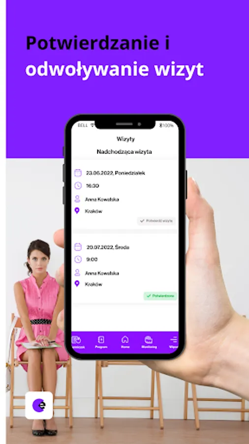 the possibility of confirming and canceling a visit arranged with a dietitian.