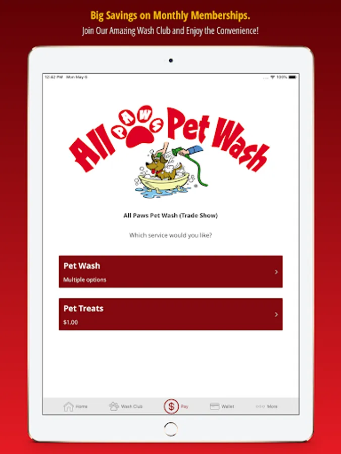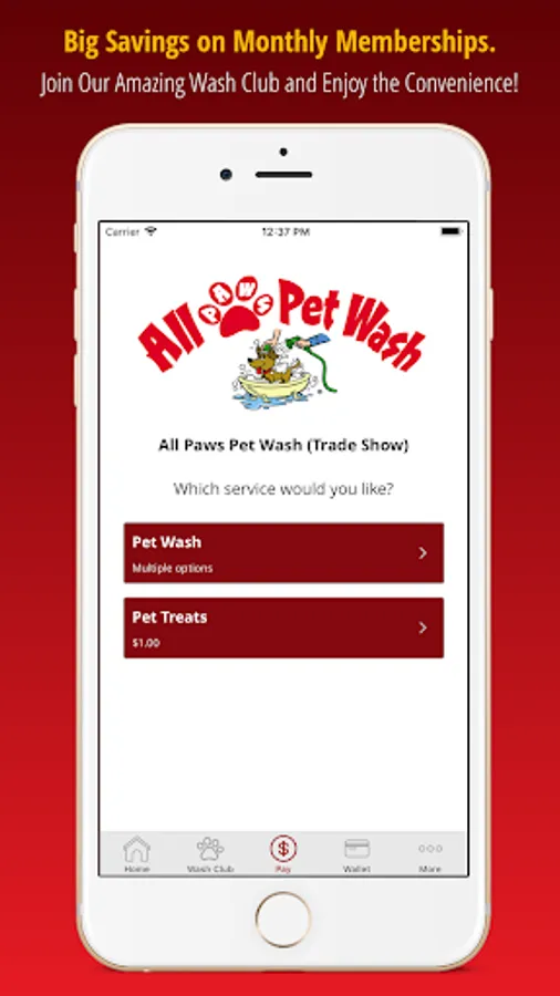 We also offer the first ever pet wash membership program through the All Paws app! Save BIG by joining the All Paws wash club and activate the pet wash machine directly through the app. The app will recognize you as a valid member and let you start washing... it's as easy as that!
