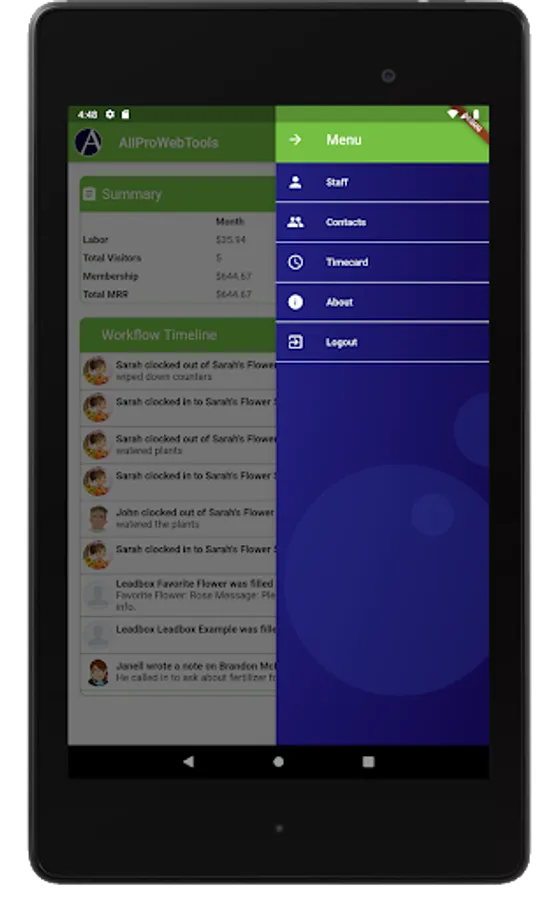 Timecard system allows your staff to clock in and out from their phone and provides GPS location on each clockin.