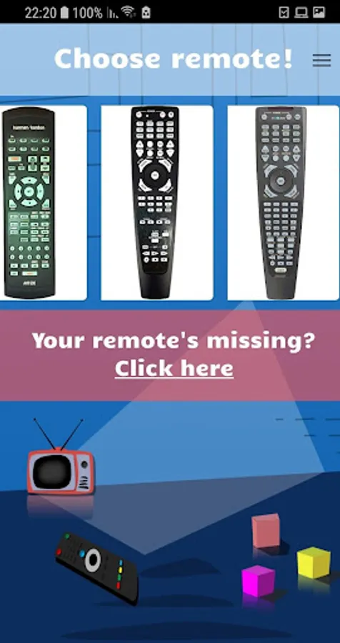 Our app comes with a wide variety of remotes, so you can choose the one that best fits your device.