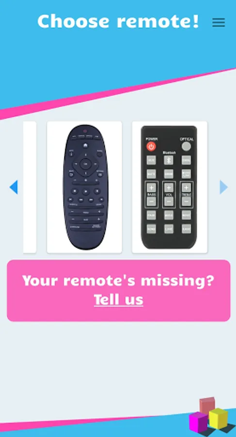 Our app has several remotes models, so you can choose the remote that fits to your device.