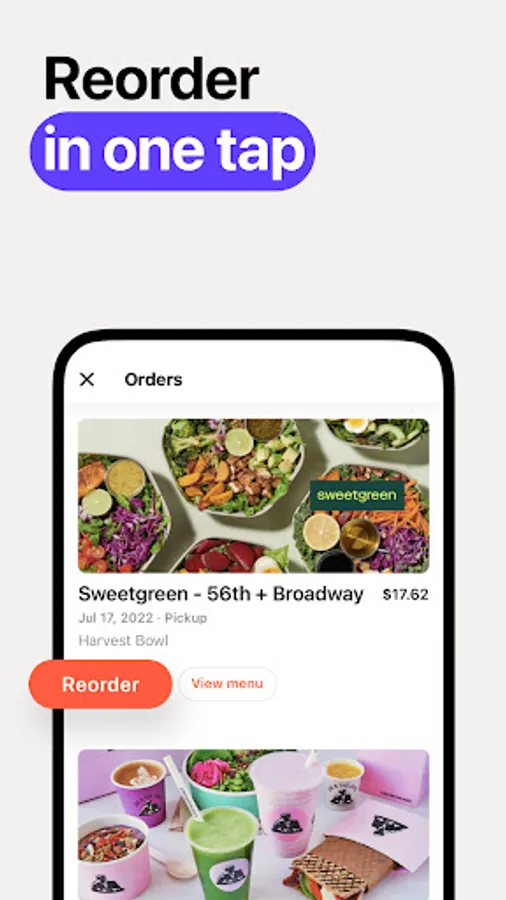 Repeat your previous order to get your faves in just one tap. Previously ordered foods & drinks are now featured in a special section of the restaurant’s menu. Plus, you’ll be able to repeat your recent orders right from the main screen.