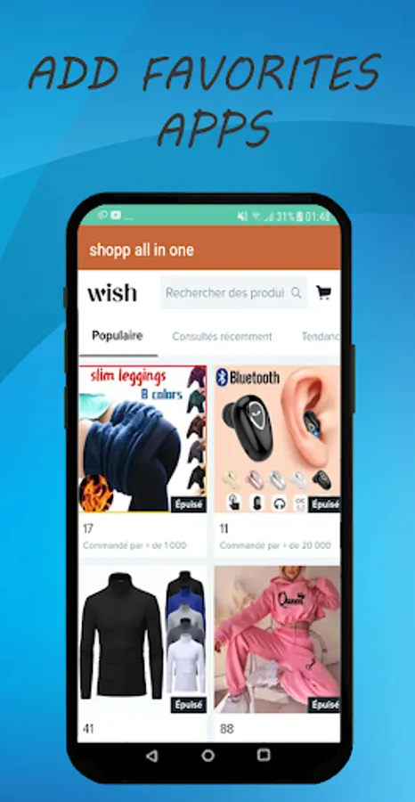 * Just install Wish Shopping Online App, it's easy to use, fast and 100% safe that works as an android browser for all apps in one app.