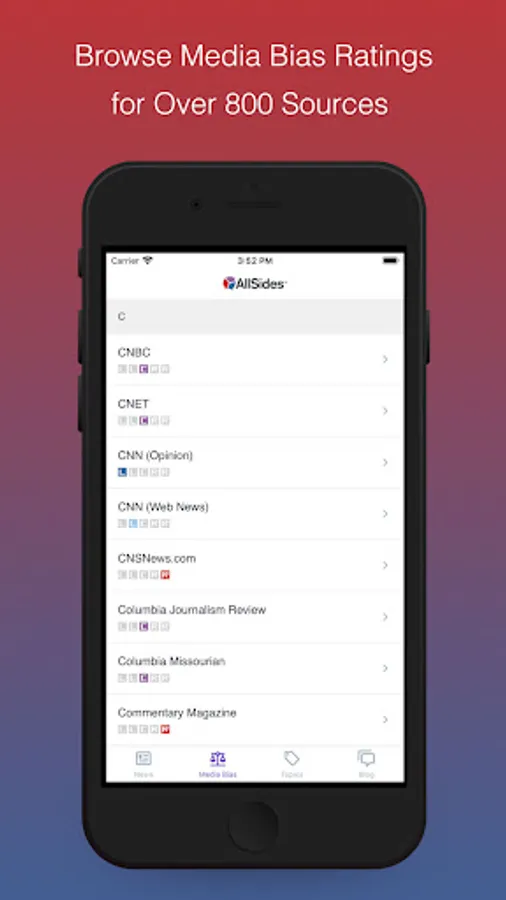 The AllSides app features: