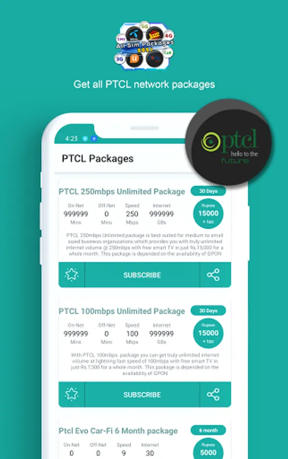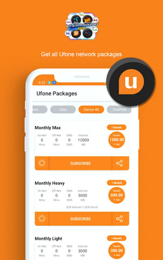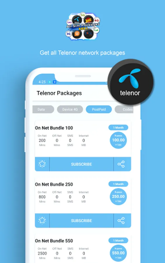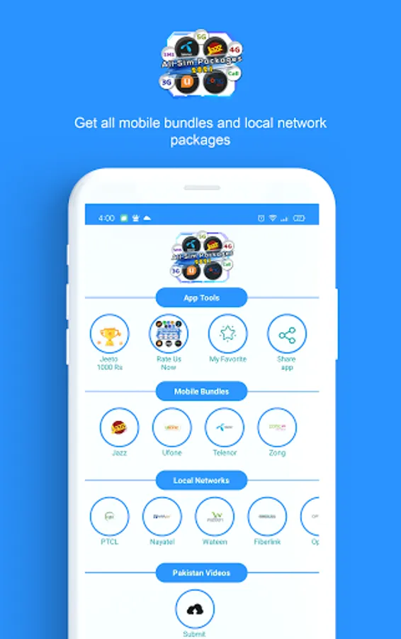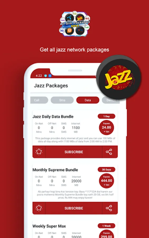 Now you don't need to remember lengthy and difficult codes to activate packages. All Network Packages 2022 Free Packages 2022 provides call, sms and internet and other packages with complete information. This app contains packages of all major mobile networks available in Pakistan such as Jazz, Telenor, Ufone and Zong. This app also provides package information about PTCL broadband, 3g/4g devices and smart tv.