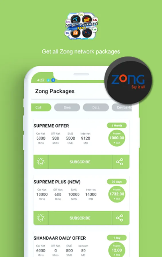 • Zong All Usage packages
