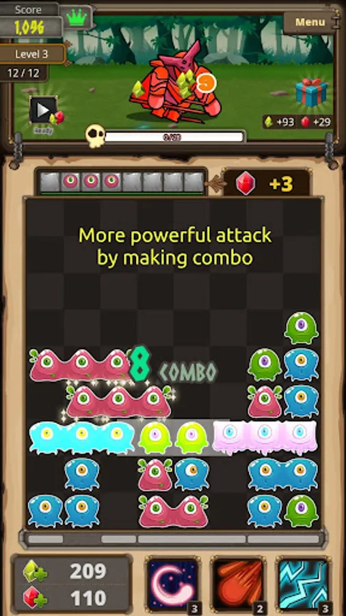 Stone and Ruby can be obtained by killing monsters, mission success, watching Ads video, level-up rewards, gifts, and more.