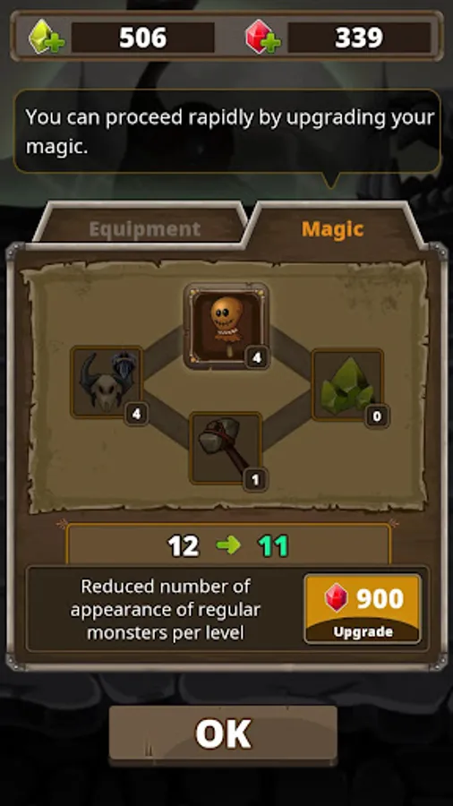 At Upgrade> Magic, you can proceed rapidly by upgrading the item with Ruby.