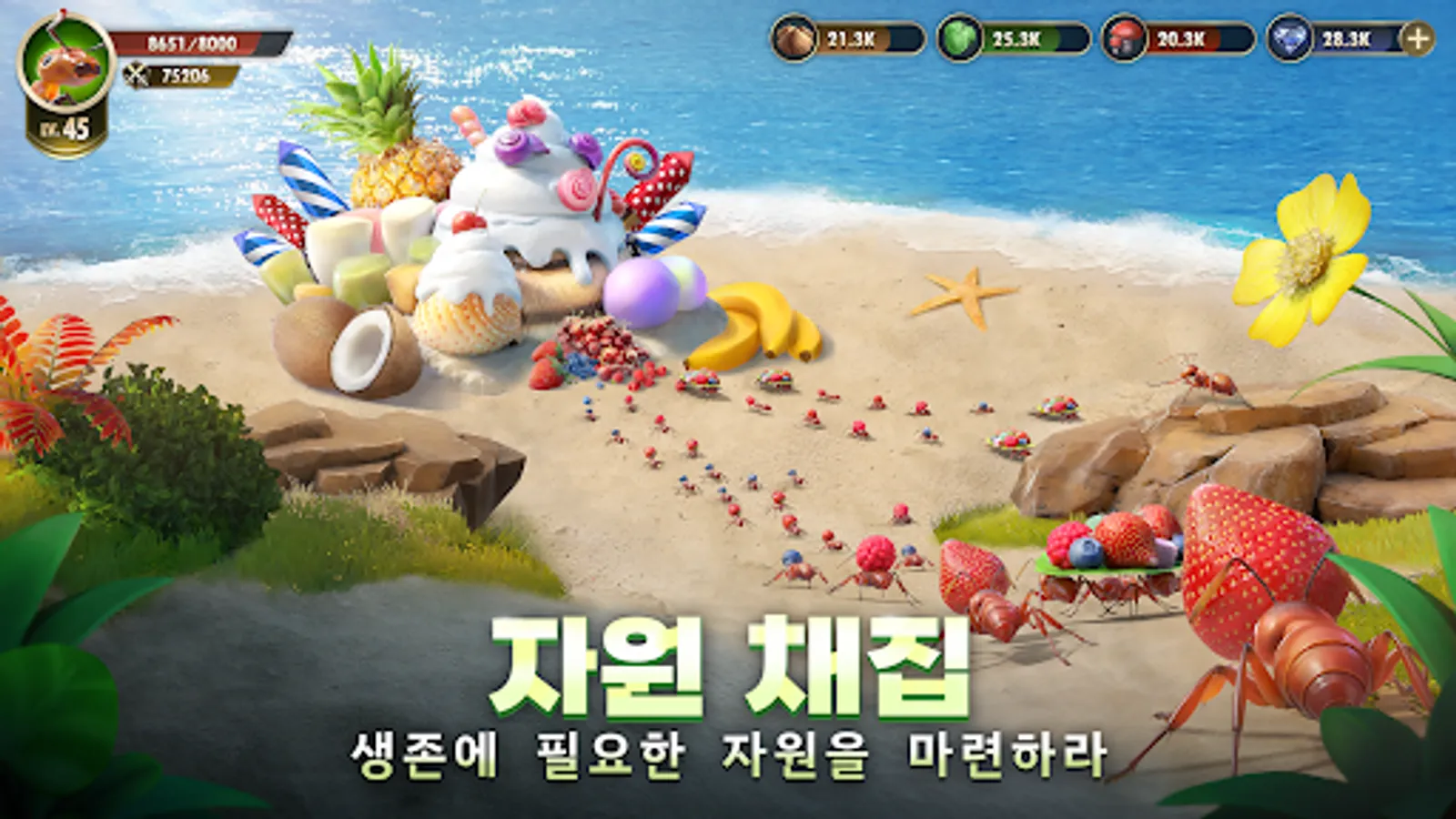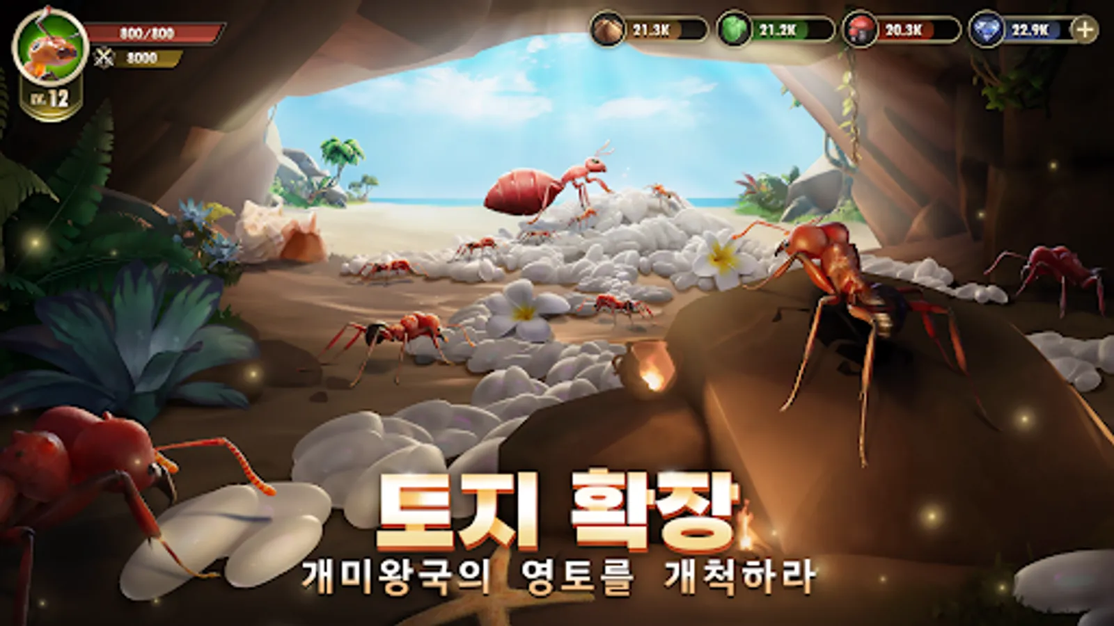 Hunt various wild creatures, collect resources, and build the strongest ant kingdom. Experience various battles and construct the best strategy based on big data.