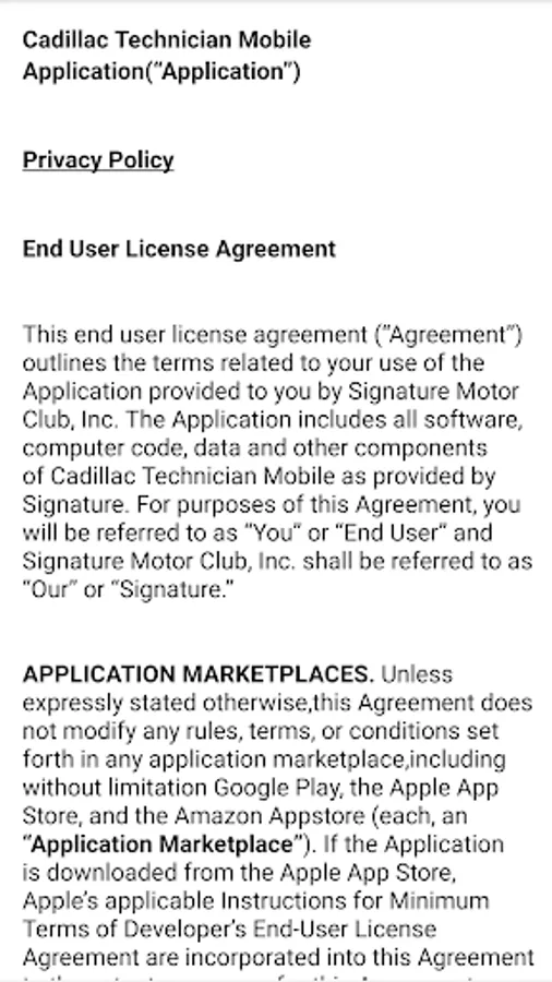 Cadillac Technician Mobile App application is not intended for use by vehicle owners