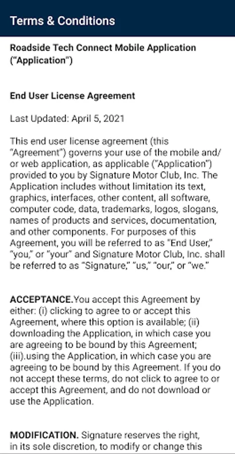 Roadside Tech Connect application is not intended for use by vehicle owners