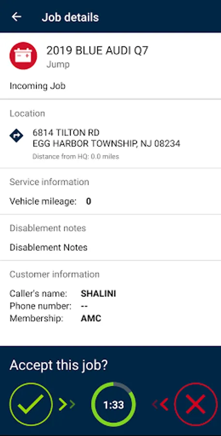 Roadside Tech Connect mobile app allows roadside assistance providers to receive and manage roadside assistance rescue requests on their smartphone. The details needed to service the customer are displayed on the phone including: