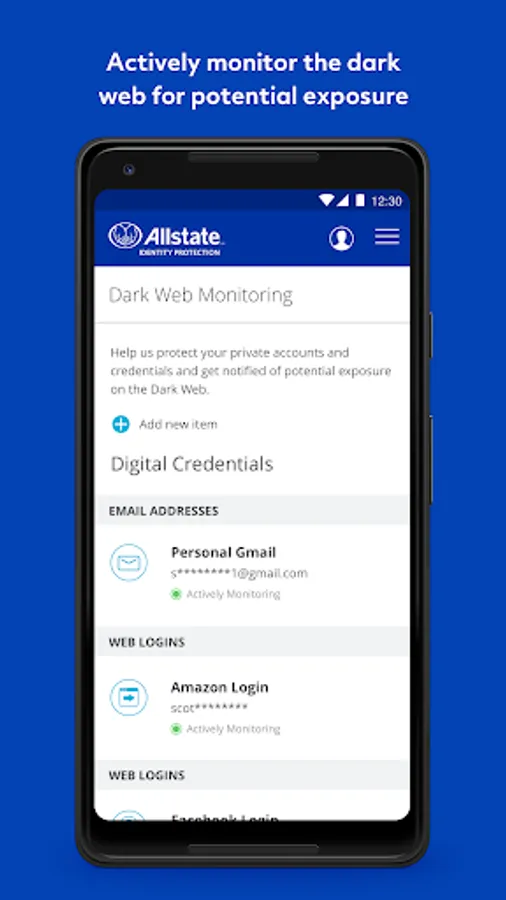 Signing in is simple and secure. In a matter of seconds, you can review alerts, see your Allstate Digital Footprint, access dark web monitoring, check your credit and overall Identity Health, and more – putting advanced identity protection right at your fingertips.
