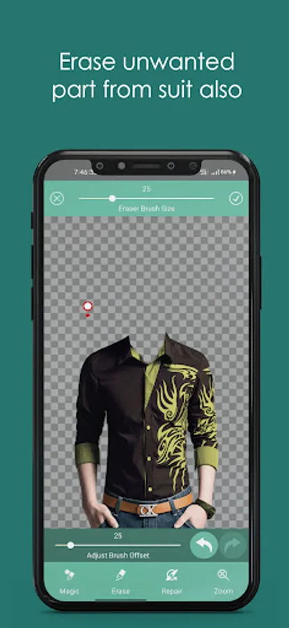 If you want you can erase the background also for the batter result by the Man Fancy Shirt Photo Suit app.