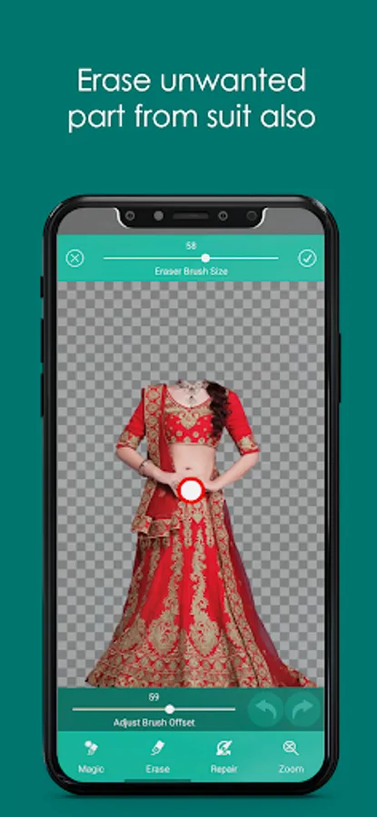 If you want you can erase the background also for the batter result by the Lehenga Choli Photo Editor app.