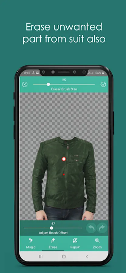 If you want you can erase background also for batter result by Man Jacket Photo Editor app.